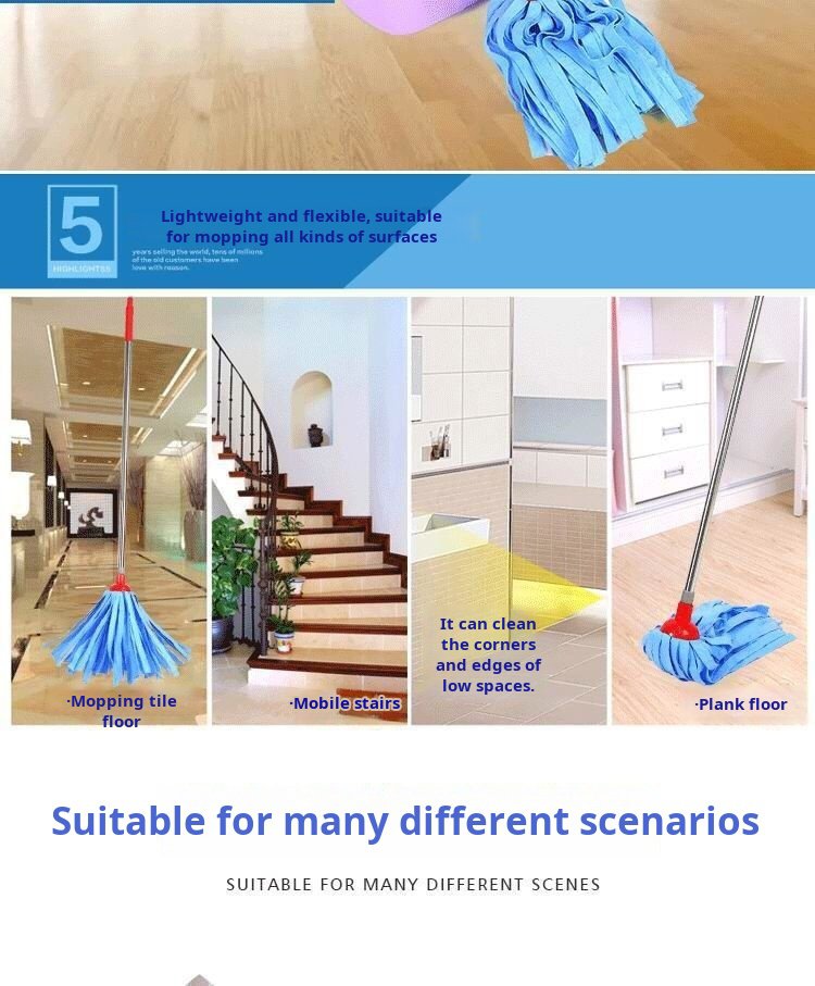 Water buckskin round head nonmarking mop Clean floors without hurting them Oldfashioned mop head